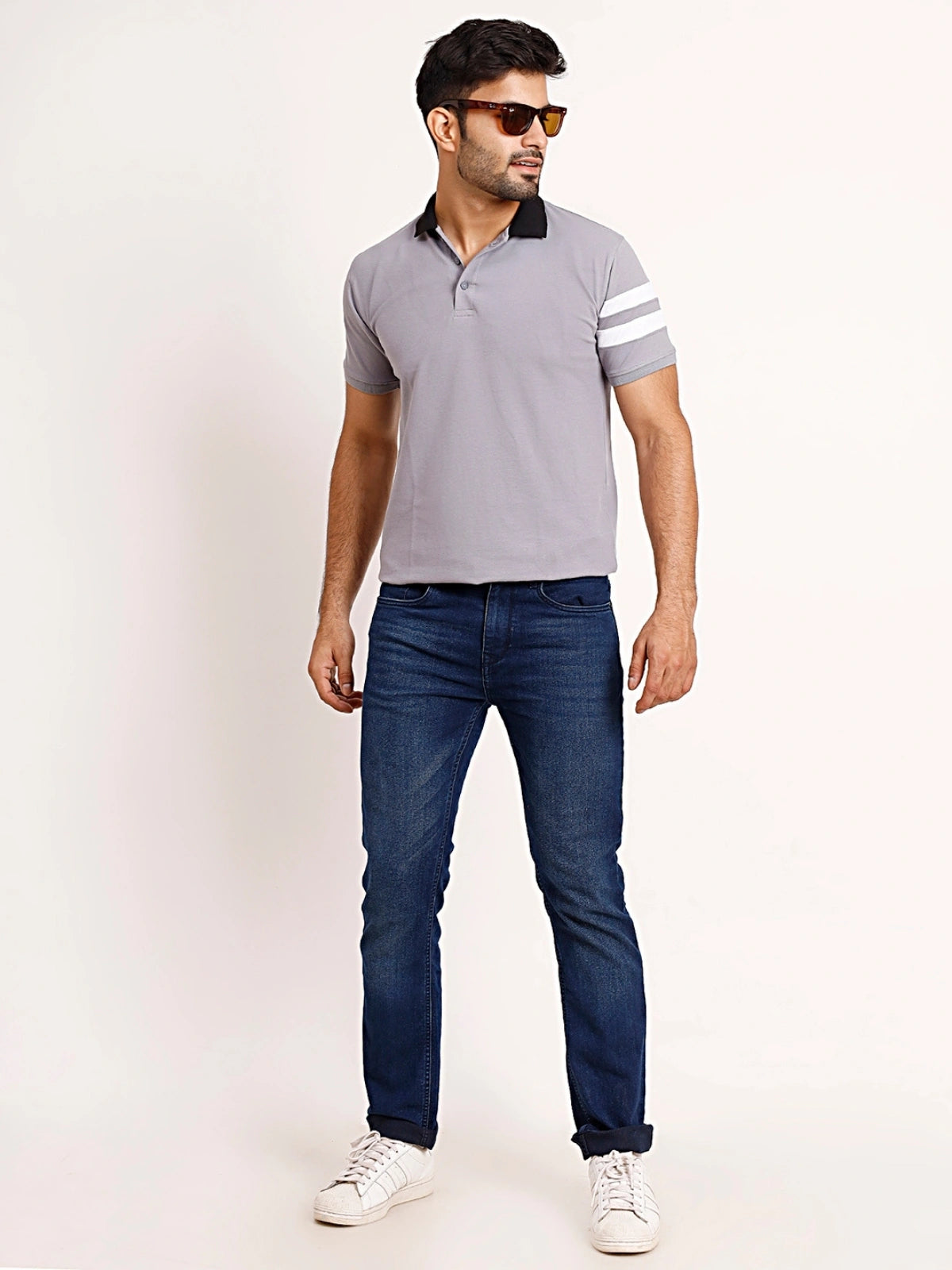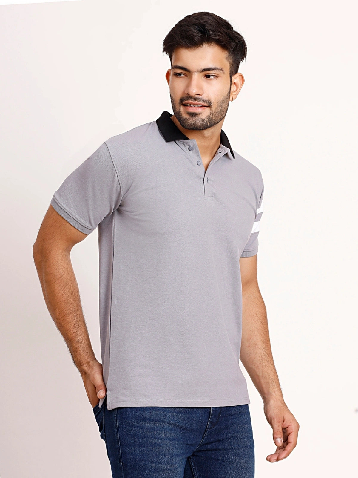 Classic Grey Polo – Contrast Collar